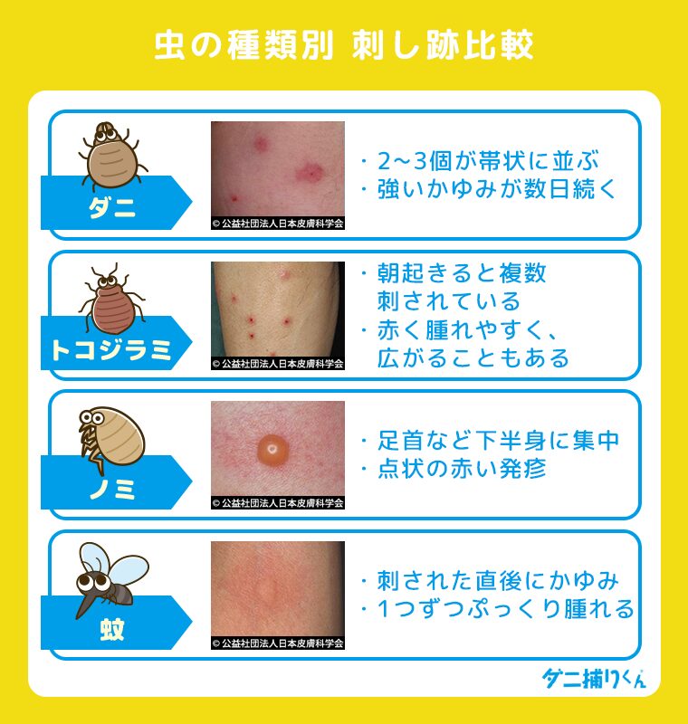 虫刺されは見た目だけでは判断しにくく、「これ本当にダニ?」「ほかの虫では?」と迷ってしまう方も多いでしょう。