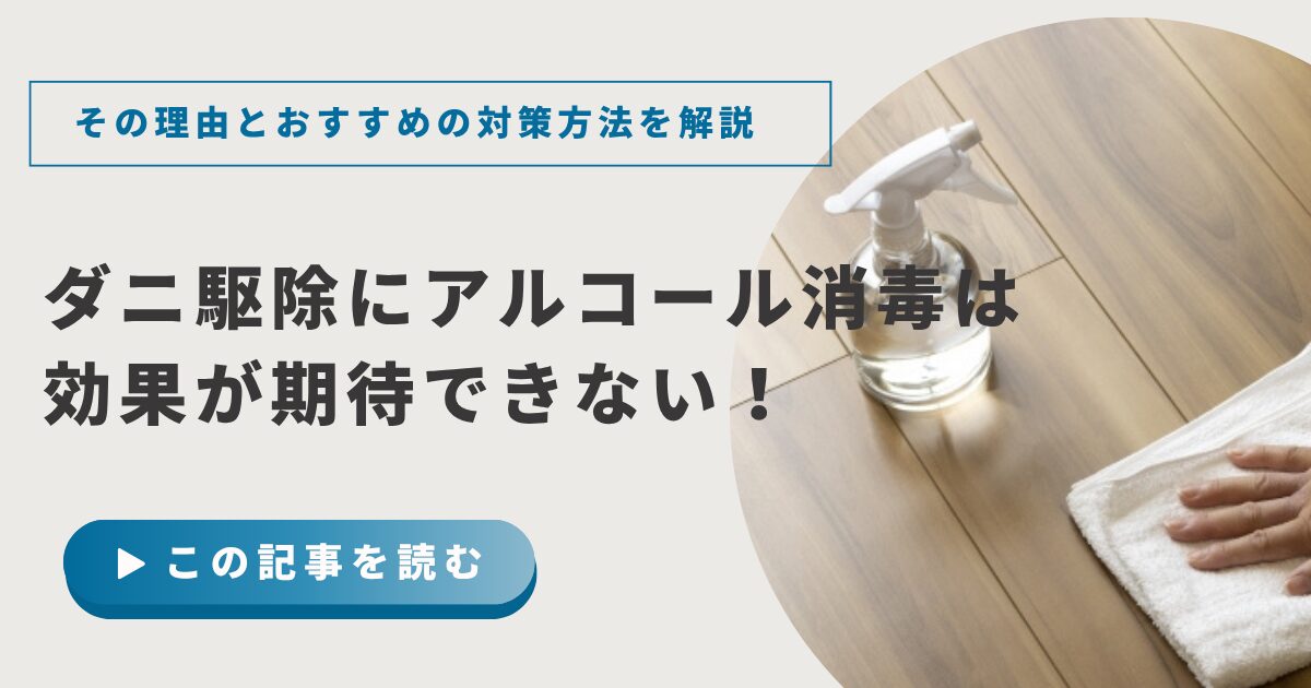 間接的なダニ対策にはなるものの、直接的にダニの駆除はできないため、アルコール消毒以外の駆除方法を併用することが重要です。
