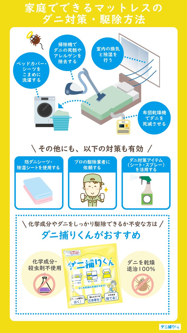 家庭でできるマットレスのダニ対策・退治(駆除)方法は、以下の通りです。